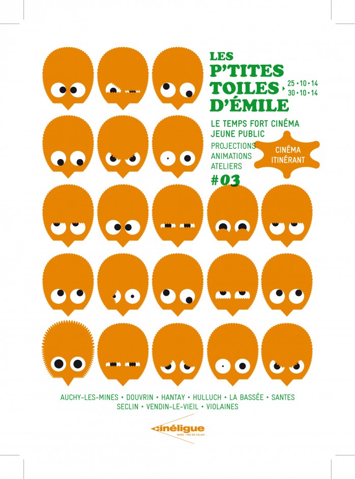 Le temps fort cinéma destiné aux jeunes publics se déroulera dans 9 communes du réseau de CinéLigue Nord-Pas de Calais, du 25 au 30 octobre 2014 : Auchy les Mines, Douvrin, Hantay, Hulluch, La Bassée, Santes, Seclin, Vendin le Vieil et Violaines.